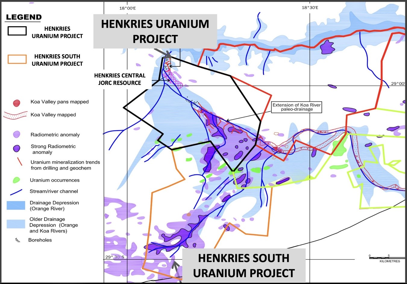 • It adds a further 10km strike length of shallow paleo-channels to the current 36km of strike length of paleo-channels that have been demonstrated to host the shallow uranium mineralisation at the Company's Henkries Project from the multiple resource drilling programmes and feasibility work completed as part of the historic US$30 million of exploration and development expenditure.